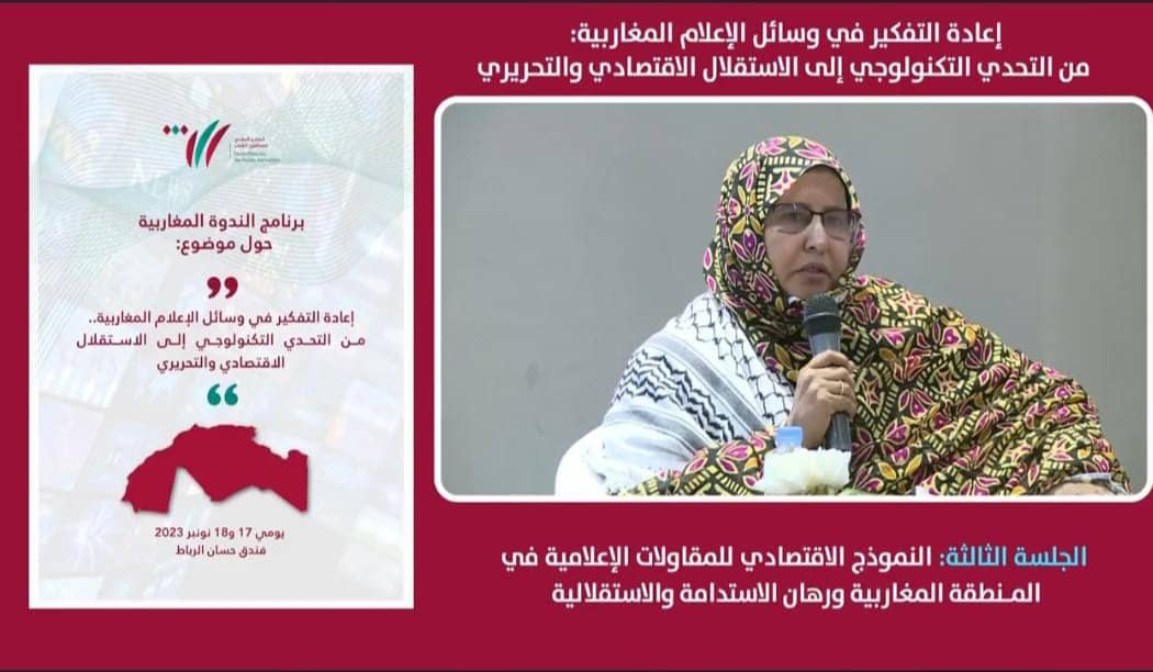 انطلقت في الرباط بالمملكة المغربية يومي 17 و18 نوفبر 2023، أشغال ندوة مغاربية حول موضوع: "إعادة التفكير في وسائل الإعلام المغاربية.. من التحدي التكنولوجي إلى الاستقلال الاقتصادي والتحريري" بمشاركة رئيسة شبكة الصحفيات الموريتانيات السيدة اخديجة بنت المجتبى التي قدمت مداخلة في الجلسة المتعلقة بالنموذج الاقتصادي للمقاولات الإعلامية في المنطقة المغاربية ورهان الاستدامة والاستقلالية حول "أي دور للدولة في ضمان استدامة وسائل الإعلام؟ وتحدثت فيها عن لتجربة الموريتانية